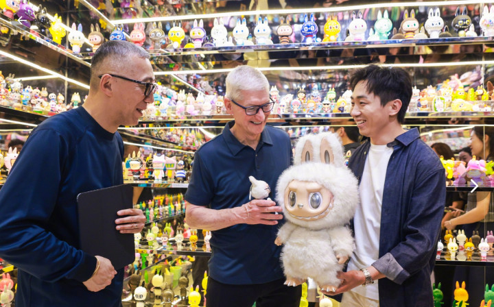 库克现身 Labubu 巡展,库克王宁龙家升合影