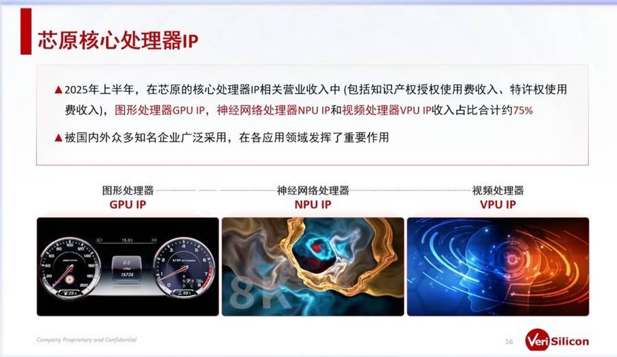 AI相关业务目前已成为芯原股份的业务中心。根据半年报披露,在芯原的核心处理器IP相关营业收入中,图形处理器(GPU)IP、神经网络处理器(NPU)IP和视频处理器(VPU)IP收入占比较高,这三类IP在上半年半导体IP授权业务收入(包括知识产权授权使用费收入、特许权使用费收入)中占比合计约75%。